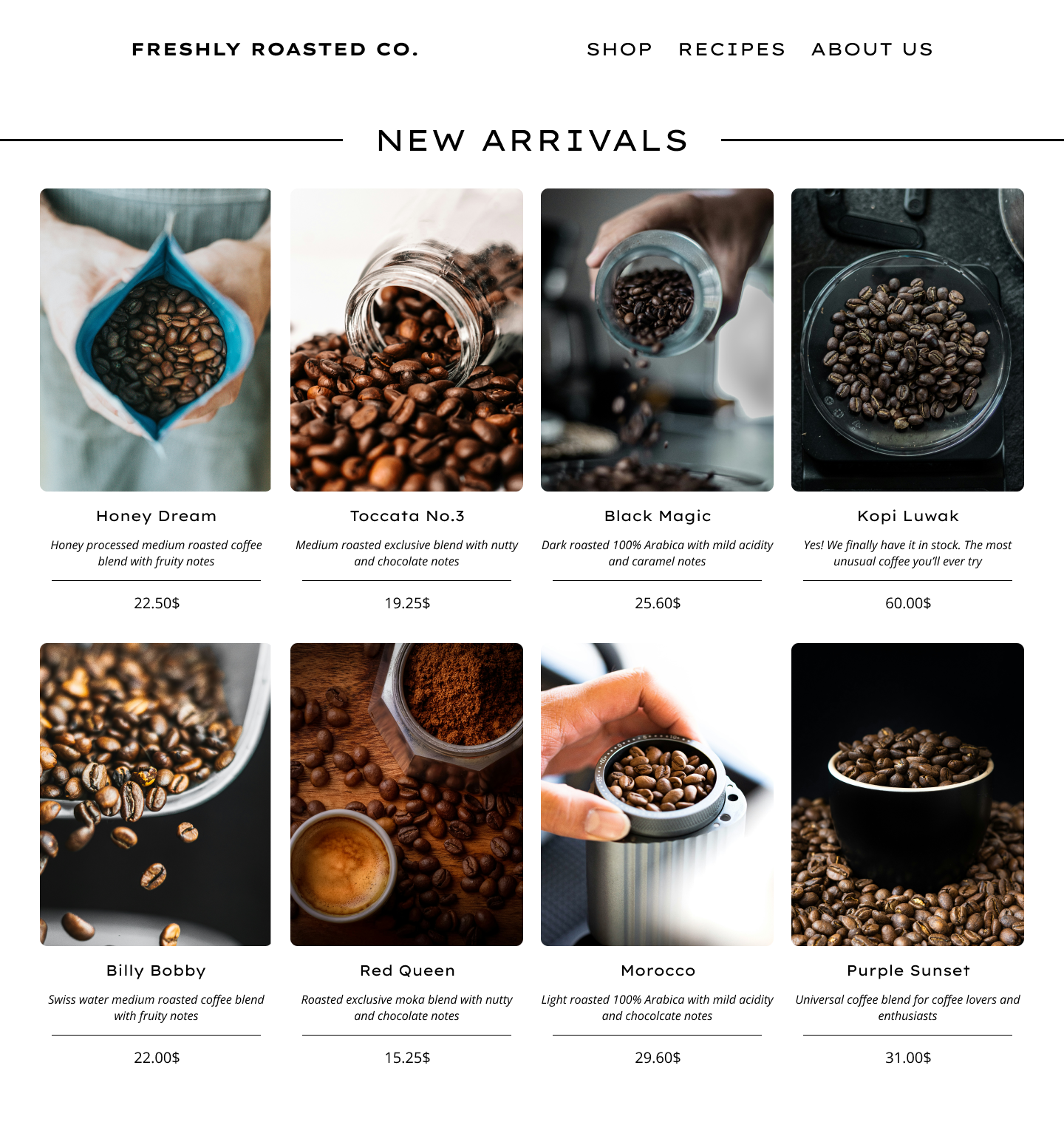 The Freshly Roasted Co. website design is in progress, stay tuned for future updates.