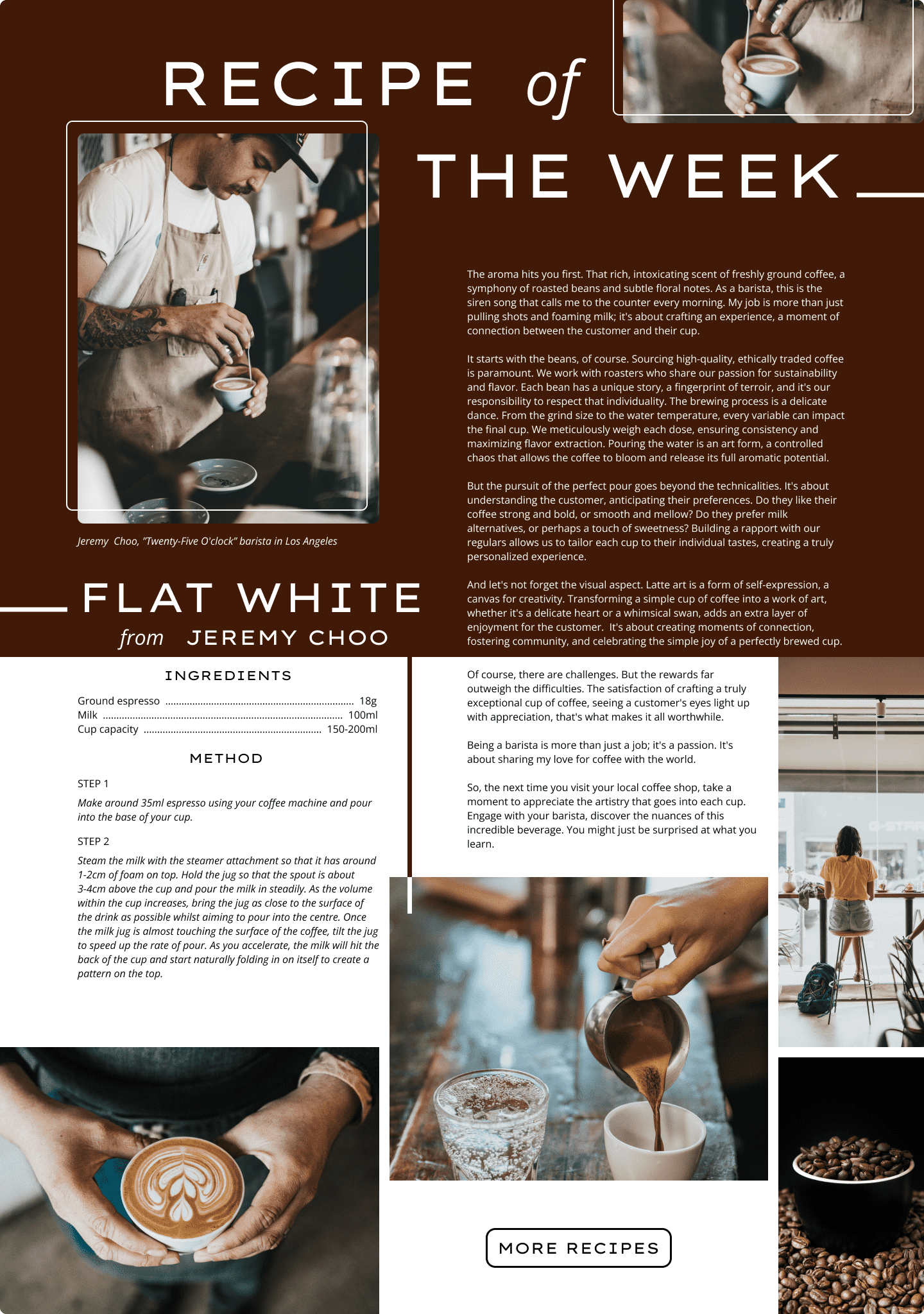 The ‘Recipe of the Week’ section is a standout feature. Its dynamic, magazine-style layout adds visual interest to the homepage and guides users through an article with high-quality imagery. Positioned in the left corner, a coffee recipe with instructions from a professional barista provides valuable insights for users. The visually appealing and dynamic design of the Freshly Roasted Co. communicates that it is more than an e-commerce platform. It’s a destination for users to dive deeper into the world of coffee. This section motivates users to return weekly for new recipes. Moreover, it fosters a loyal customer base and drives potential conversions.
