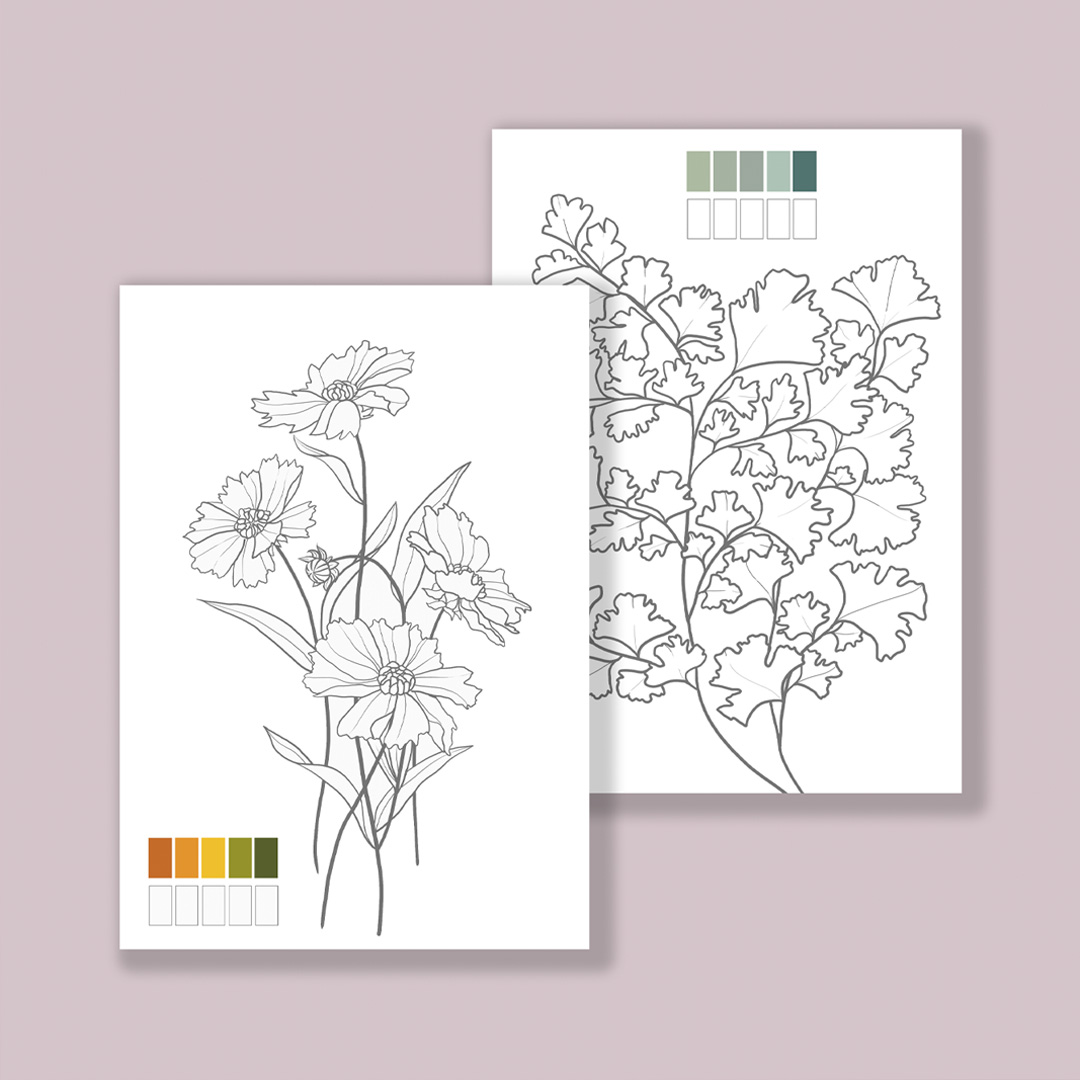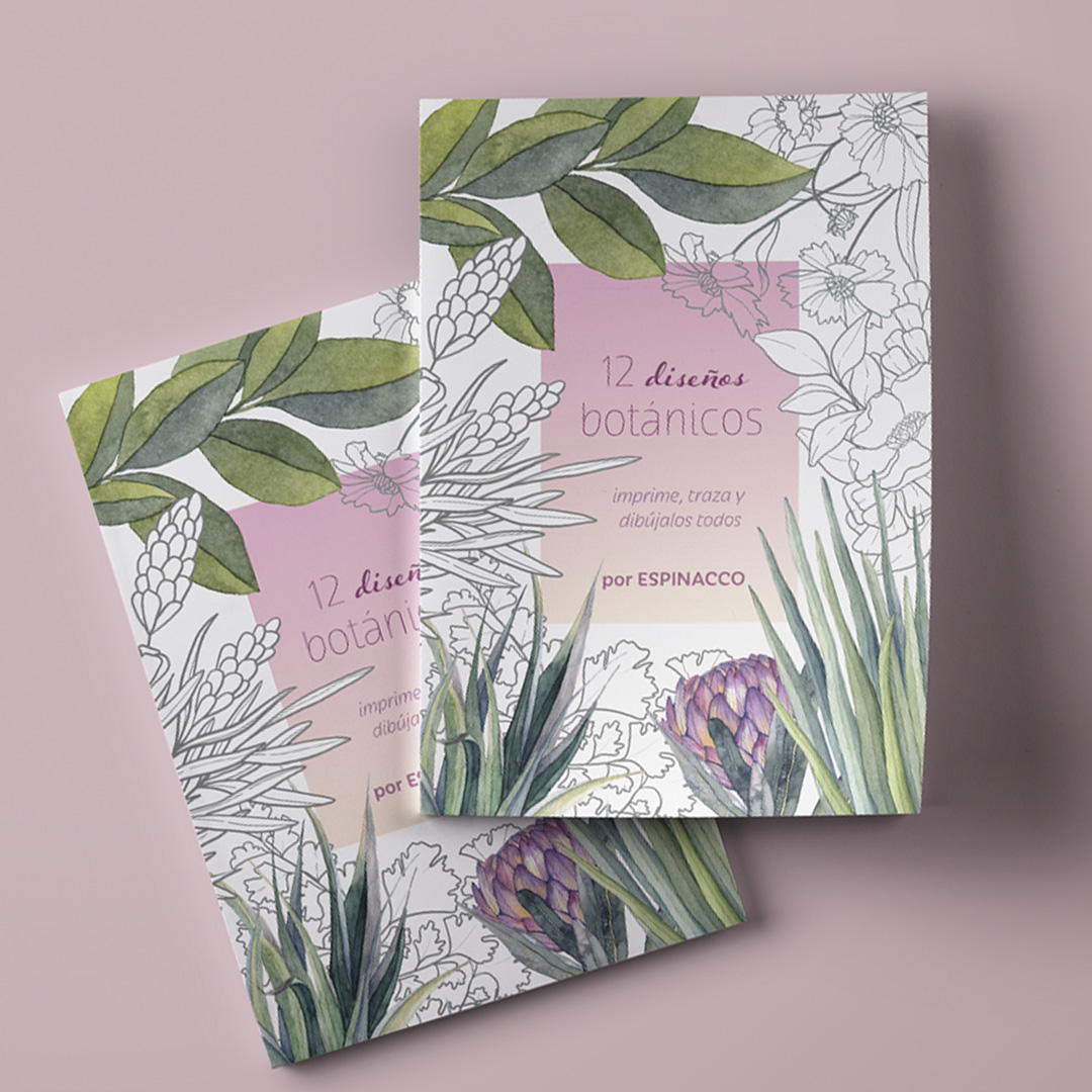 12 Diseños Botánicos es un e-book de trazos. En él, podrás encontrar 12 bocetos botánicos listos para calcar en tamaño A4 y A5. Además, se incluyen unos esquemas de color a modo de sugerencia. El número total de páginas es 22.